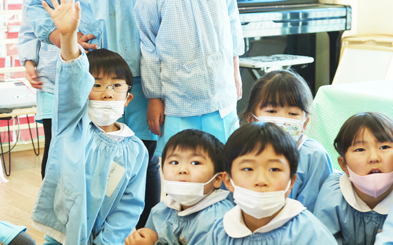 その日楽しんだことやみんなで共有したいことを先生やお友だちに紹介したり話し合って明日も楽しみをもって登園できるような時間です。